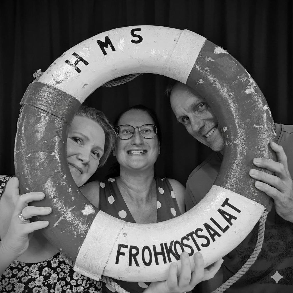 Wir sind Kati, Meike und Michi, und zusammen sind wir Frohkostsalat! Was als gemeinsame Leidenschaft begann, hat sich zu einer lebendigen Improtheatergruppe entwickelt, die es liebt, die Magie des spontanen Augenblicks auf die Bühne zu bringen. Seit Jahren tauchen wir begeistert in die Welt des Improvisationstheaters ein und nehmen die Herausforderung an, aus dem Nichts – komplett ohne Skripte oder Drehbücher – fesselnde Szenen zu entwickeln.